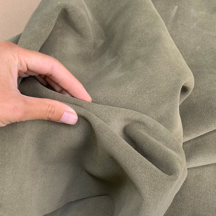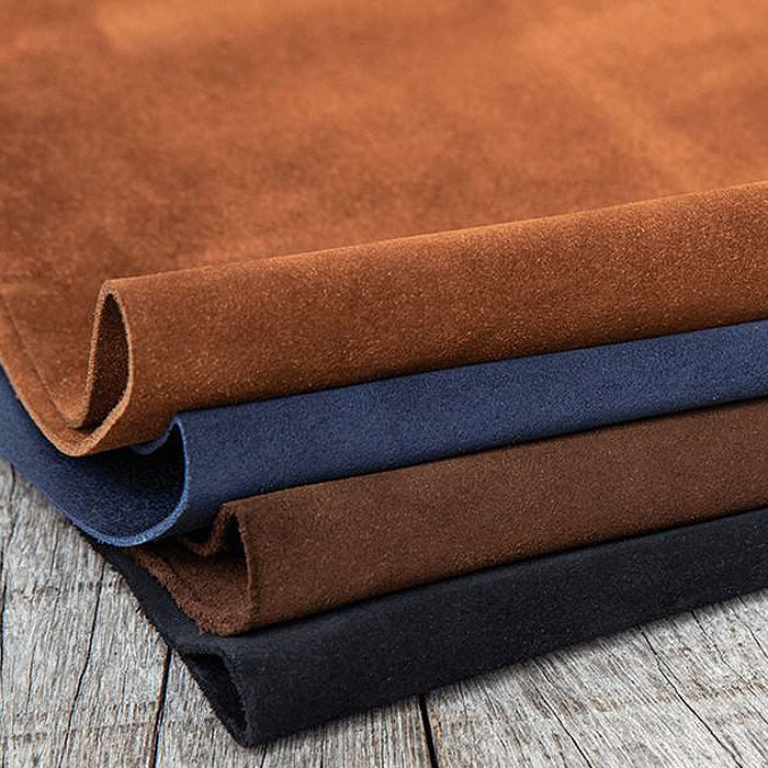 Cow suede leather is a type of leather made from the underside of a cowhide, which is the inner, softer side of the hide. The surface of cow suede leather has a soft, napped texture that gives it a unique, velvety feel.